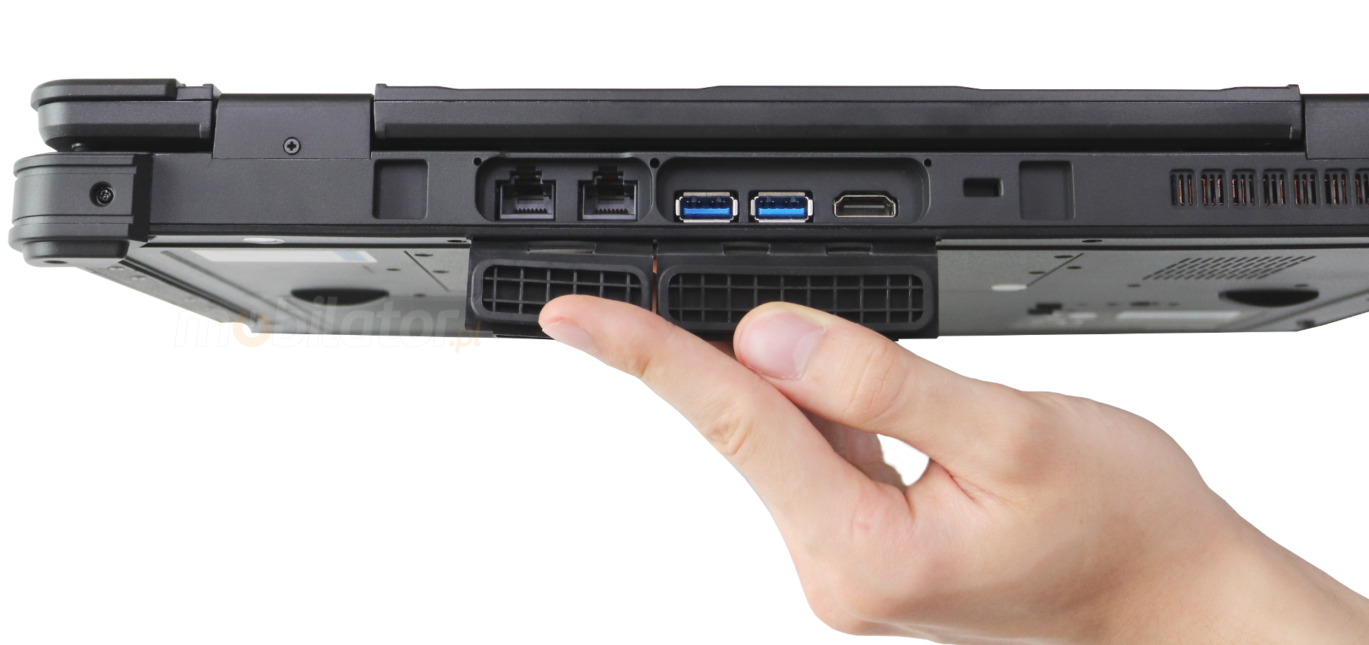 The industrial Emdoor Notebook uses a proven cooling system, based only on solid elements, mainly heat sinks. The system uses the phenomenon of metals passing thermal energy into the environment - there are no additional moving elements in the form of eg fans. This solution ensures noiseless operation, lower failure rate and greater protection against dust and other dirt while reducing the amount of energy consumed.