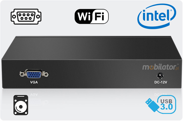 The industrial Mini PC uses a proven cooling system, based only on solid elements, mainly heat sinks.The system uses the phenomenon of metals passing thermal energy into the environment - there are no additional moving elements in the form of eg fans.This solution ensures noiseless operation, lower failure rate and greater protection against dust and other dirt while reducing the amount of energy consumed.