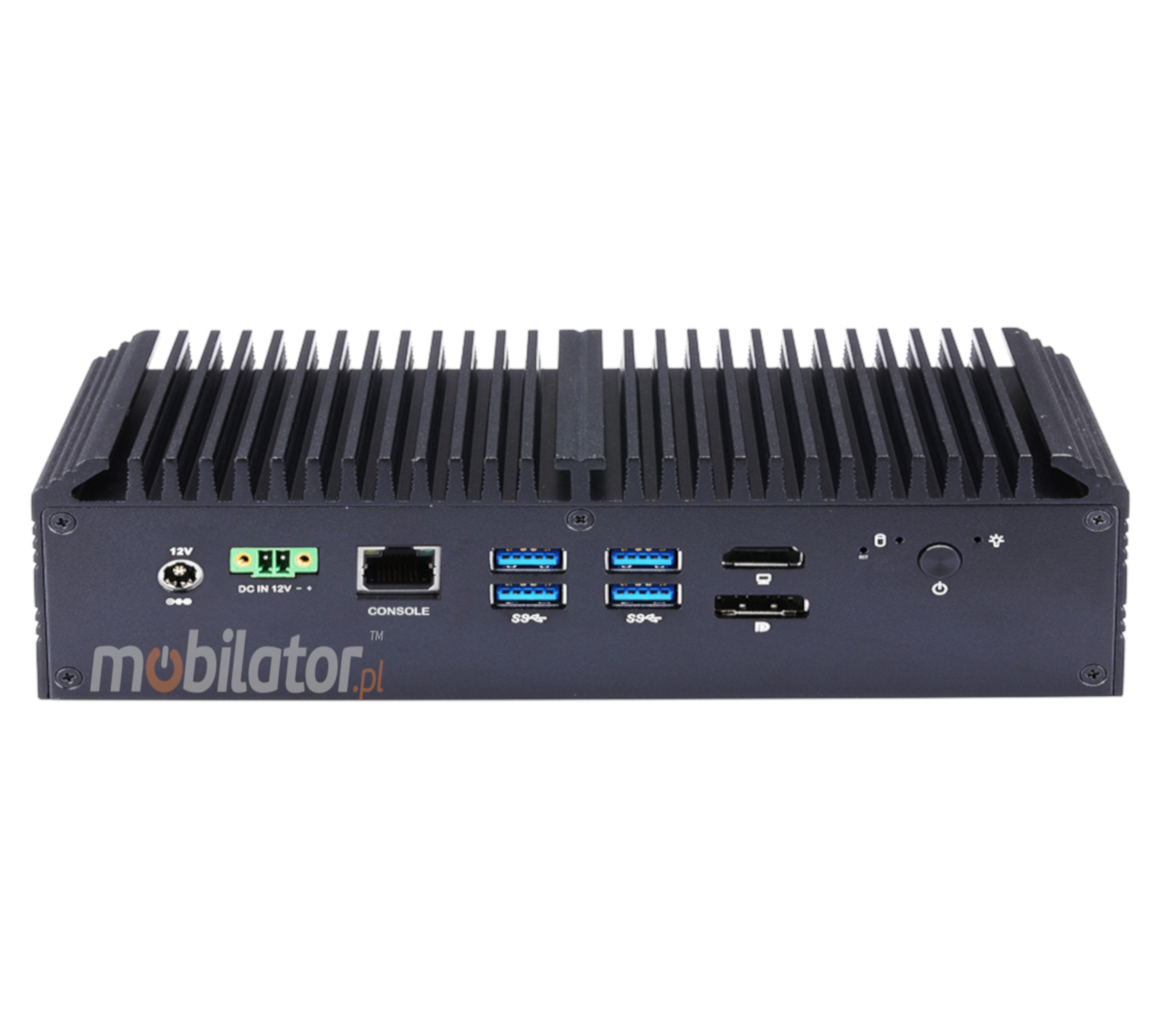The passive cooling system used in the MiniPC mBOX Q1012GE combined with the SSD disk makes this computer very resistant to various types of mechanical injuries. An additional advantage of industrial computers is a solid construction made of high quality aluminum and specially designed in such a way that in addition to high efficiency in heat dissipation, it can also resist any external damage.