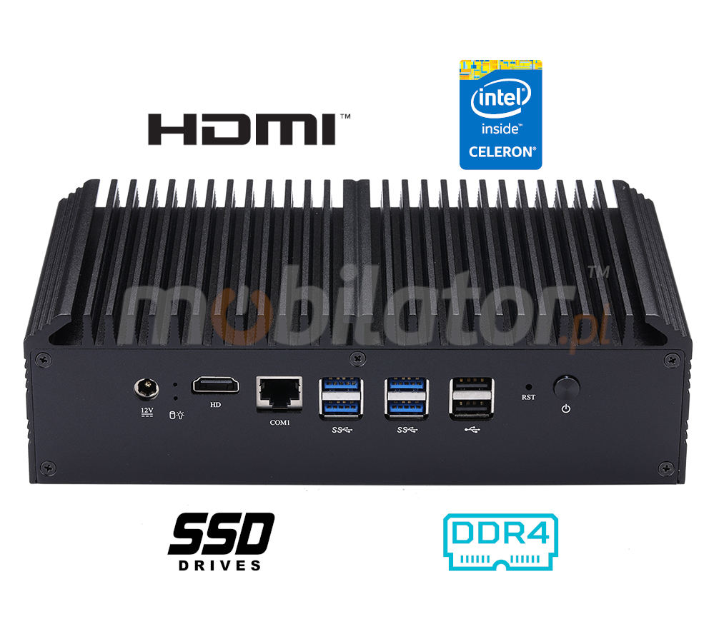 The passive cooling system used in the MiniPC mBOX Q817GEX combined with the SSD disk makes this computer very resistant to various types of mechanical injuries.An additional advantage of industrial computers is a solid construction made of high quality aluminum and specially designed in such a way that in addition to high efficiency in heat dissipation, it can also resist any external damage.