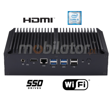 Small dimensions industrial computers excel in environments where dust, dirt and moisture predominate. They are ideal for applications requiring quiet operation. Small and reliable MiniPC use heat-pipe technology and aluminum fins for passive cooling. The robust mini Industrial Computer mBOX Q858GE is a device designed for all industrial and non-continuous applications requiring continuous operation - 24 hours, 7 days a week.