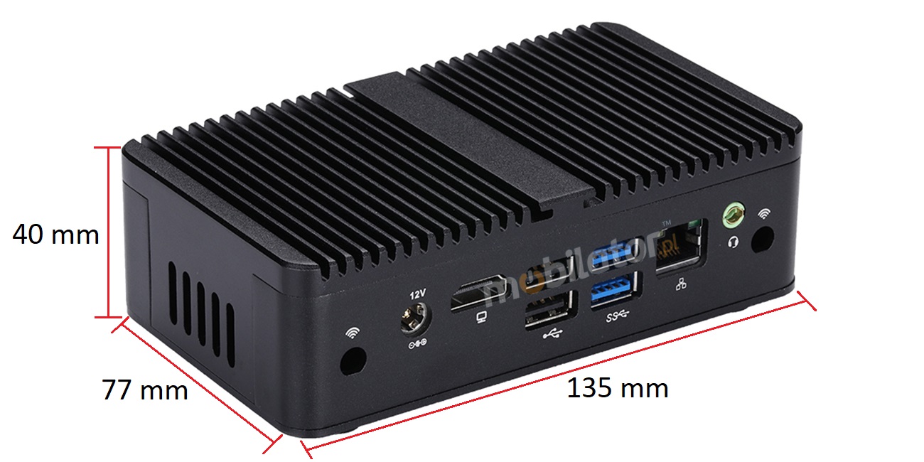 The industrial Mini PC uses a proven cooling system, based on solid elements, mainly heat sinks.However, pc has a small fan which function is redistribiuting heat evenly across the case, helping heat sinks keep the optimal temperature of the device.