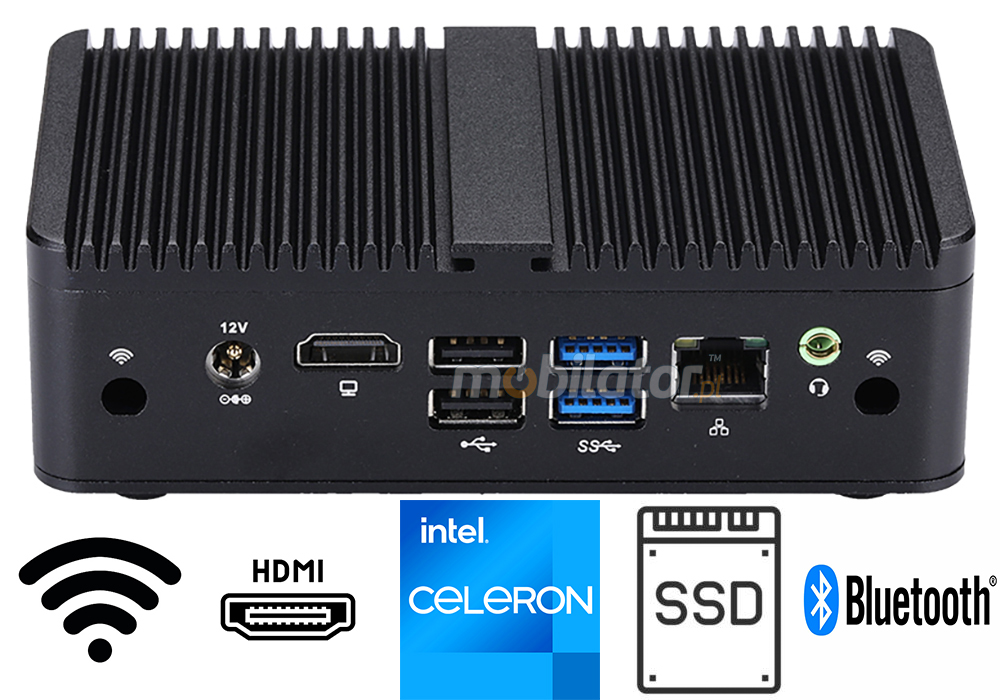 The industrial Mini PC uses a proven cooling system, based on solid elements, mainly heat sinks.However, pc has a small fan which function is redistribiuting heat evenly across the case, helping heat sinks keep the optimal temperature of the device.