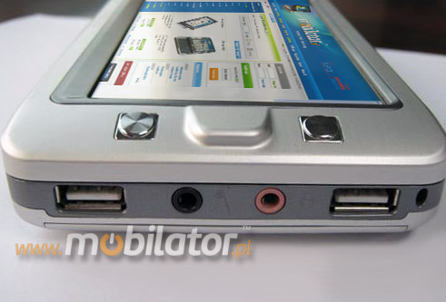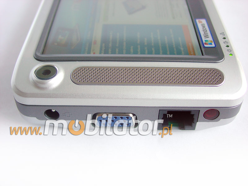 A118 UMPC he was equipped in many useful ports: VGA (max:1024x600), LAN, 2xUSB, Audio (In/Out).