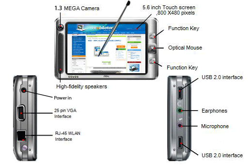 A118 UMPC is equipped with various available devices considering the user. It provide the best available devices for users such as the exclusive optic sensor mouse of the industry, touch screen, 1.3 milion pixel camera, external hard disk feature.