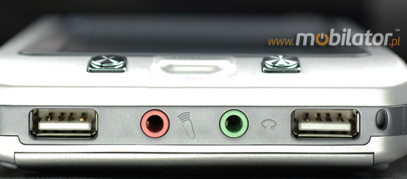 501B UMPC he was equipped in many useful ports: VGA (max:1024x600), LAN, 2xUSB, Audio (In/Out) and SD card reader.
