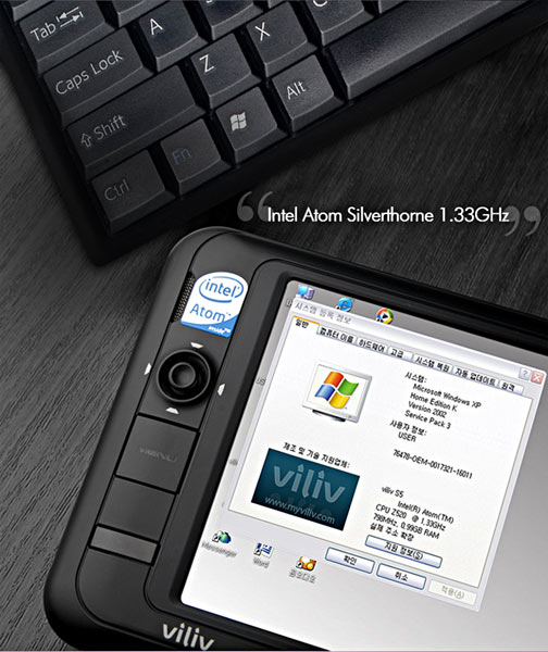 You can enjoy fully functional Internet surfing, emailing, presentation, music listening, movie watching and so on. S5 is equipped with an Intel Atom Z520 featuring 1330 MHz of processing power. This chip from Intel provides some of the best power per watt performance in its class. Real life performance is almost 3 times better than similar CPUs and provides far better power charactistics than even the most modern "power saving" notebook CPUs. By running Windows XP Home edition, Viliv gives you the most stable and versatile PC performance possible.