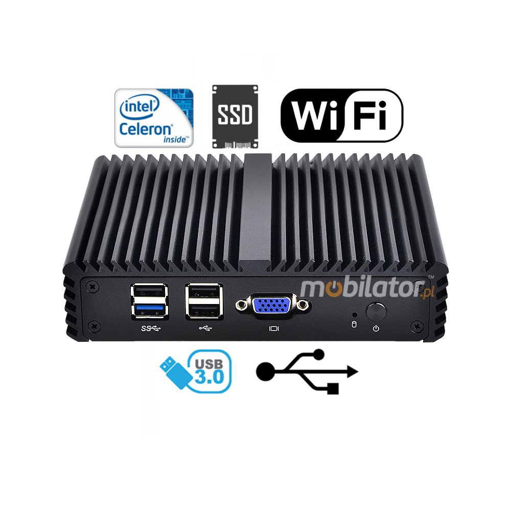 The industrial mini-computer mBOX-Q190G4N uses an efficient and energy-saving Intel Celeron J1900 processor. Inside it there are four cooperating cores enabling more efficient processing of many tasks at the same time. The shared cache memory in which the multilevel hierarchy is used is dynamically allocated to each processor core depending on the load. This reduces the average access time to the main memory.