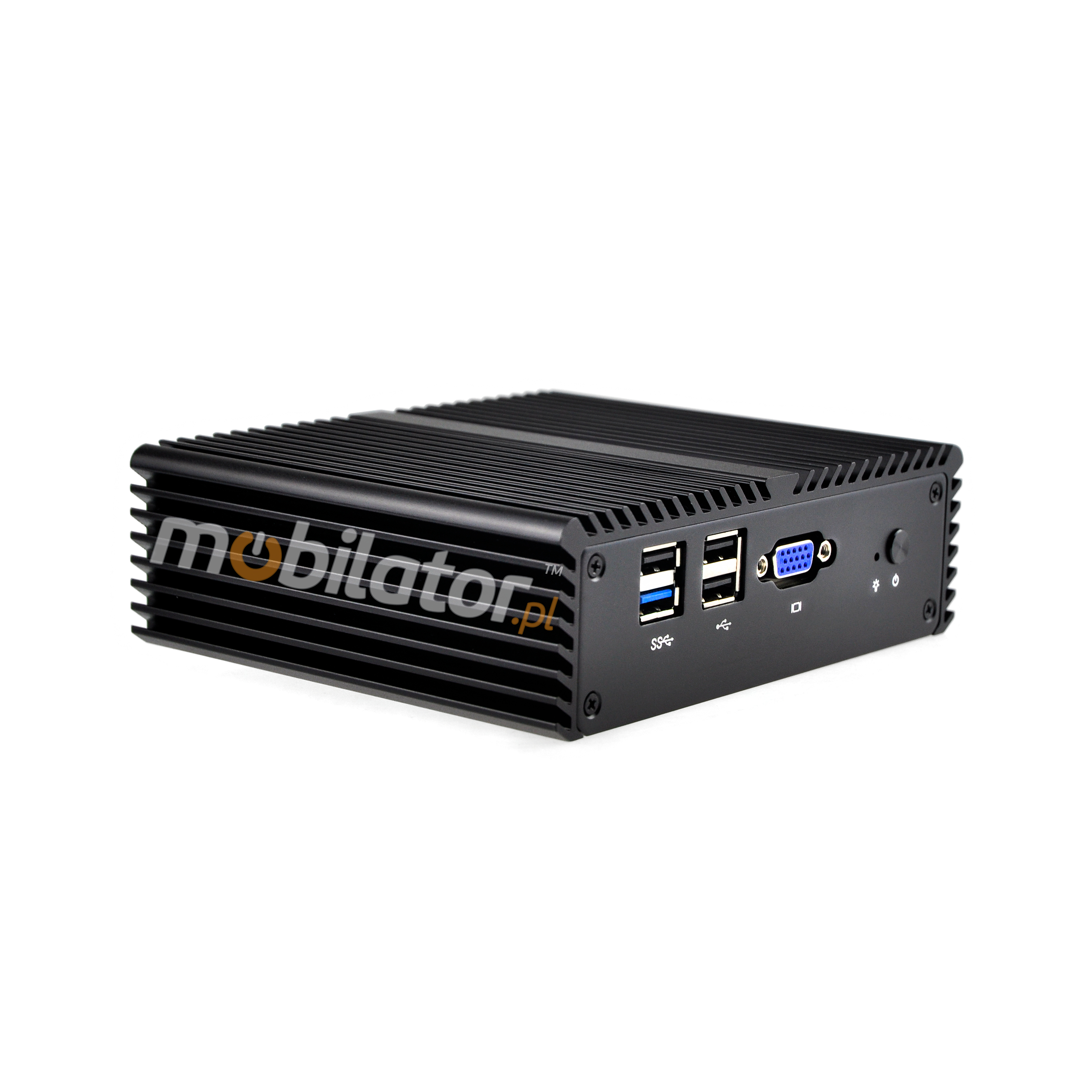 Small dimensions industrial computers excel in environments where dust, dirt and moisture predominate. They are ideal for applications requiring quiet operation. Small and reliable MiniPC use heat-pipe technology and aluminum fins for passive cooling. The robust mini Industrial Computer mBOX-Q190G4N is a device designed for all industrial and non-continuous applications requiring continuous operation - 24 hours, 7 days a week.