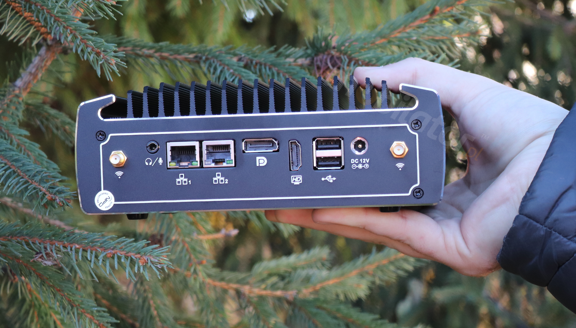 2x LAN | 1x HDMI | 1x DP | 1x Audio + Mic | 2x USB 2.0 | 1x DC 12V |