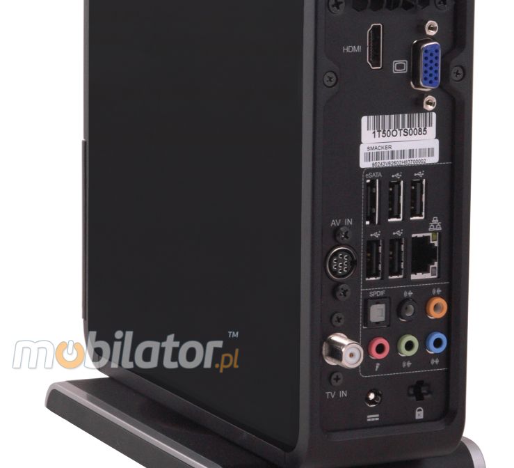 4 x USB, 1 x eSATA, 1 x D-SUB, 1 x HDMI, 1 x SPDIF, LAN RJ45 (10/100/1G LAN), 8 Channel Audio, 5 Jacks, WiFi antena (Option), AV IN (S-Video) (Option), TV IN ( TV Tuner) (Option), DC-in Jack, Kensington lock