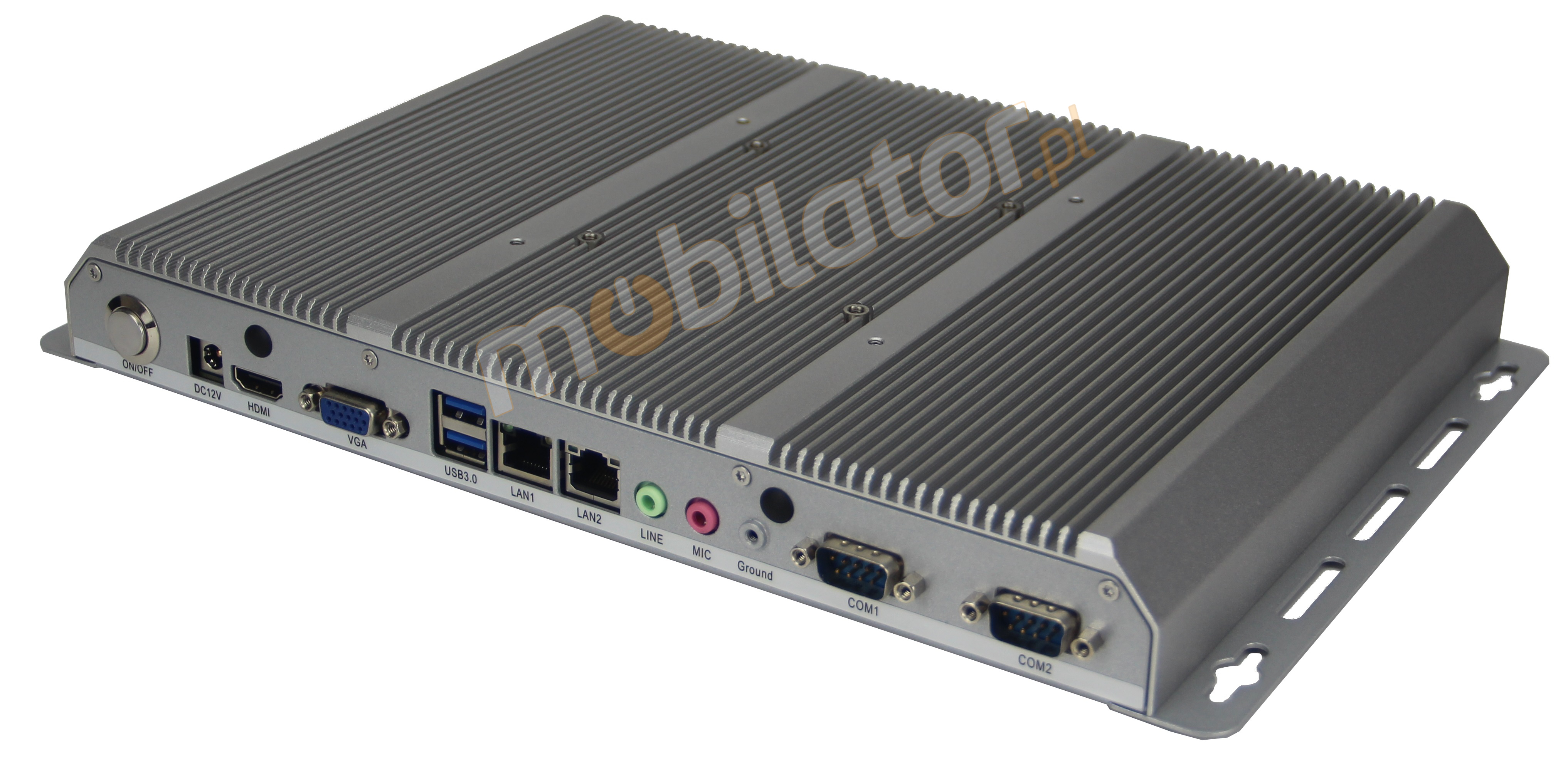 The industrial Mini PC uses a proven cooling system, based only on solid elements, mainly heat sinks.The system uses the phenomenon of metals passing thermal energy into the environment - there are no additional moving elements in the form of eg fans.This solution ensures noiseless operation, lower failure rate and greater protection against dust and other dirt while reducing the amount of energy consumed.