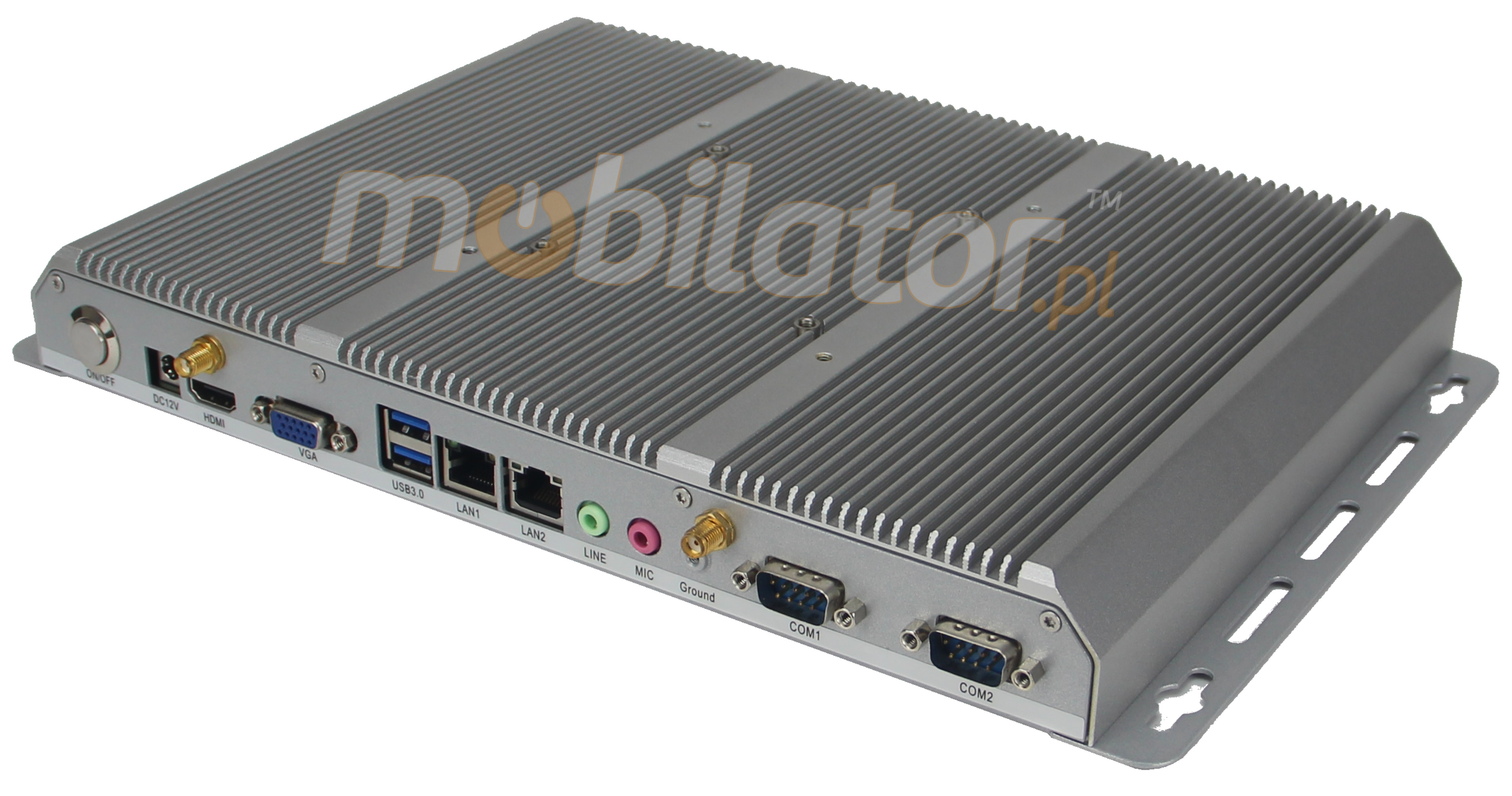 The industrial Mini PC uses a proven cooling system, based only on solid elements, mainly heat sinks.The system uses the phenomenon of metals passing thermal energy into the environment - there are no additional moving elements in the form of eg fans.This solution ensures noiseless operation, lower failure rate and greater protection against dust and other dirt while reducing the amount of energy consumed.