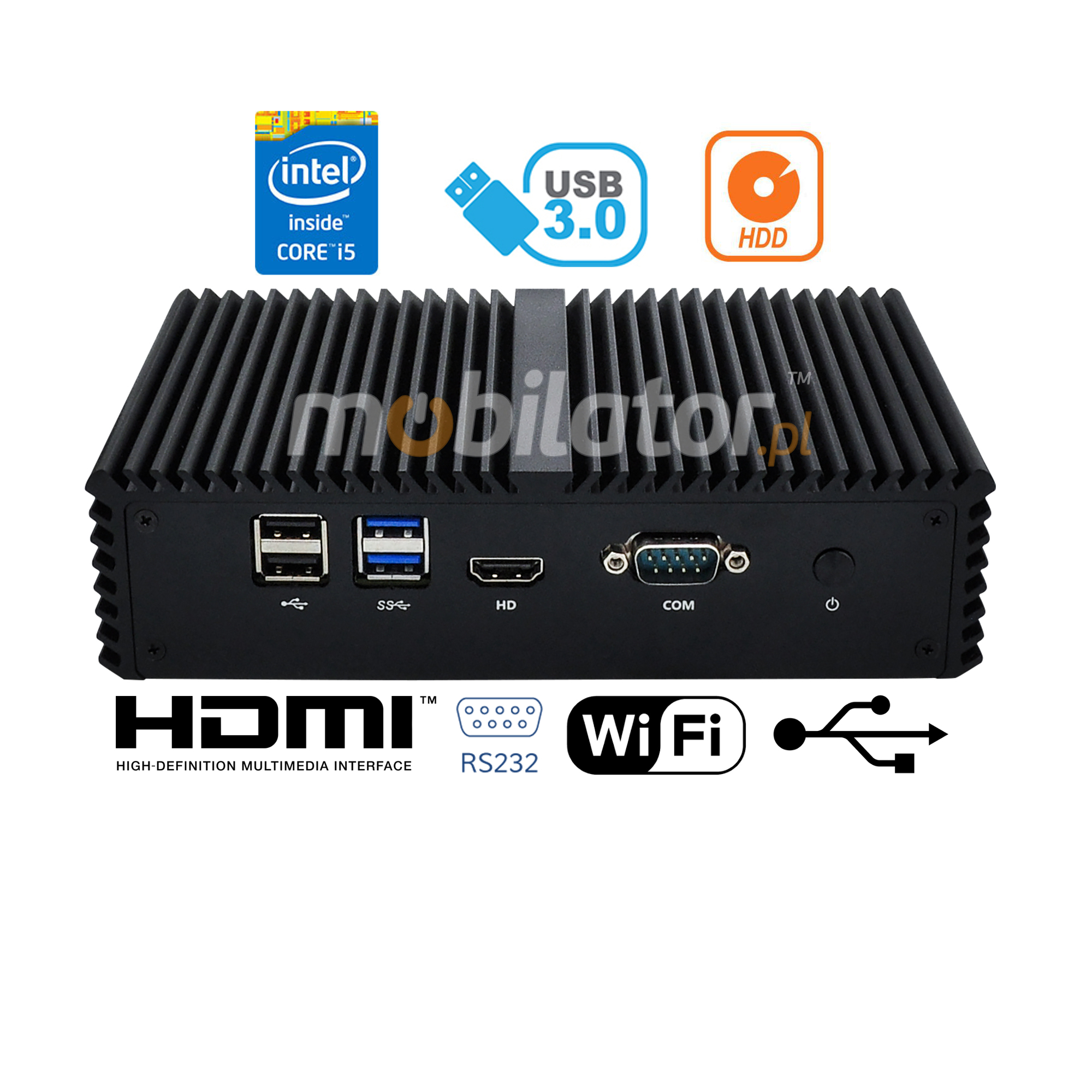Small dimensions industrial computers excel in environments where dust, dirt and moisture predominate.They are ideal for applications requiring quiet operation.Small and reliable MiniPC use heat-pipe technology and aluminum fins for passive cooling.The robust mini Industrial Computer mBOX-Q5-510 is a device designed for all industrial and non-continuous applications requiring continuous operation - 24 hours, 7 days a week.