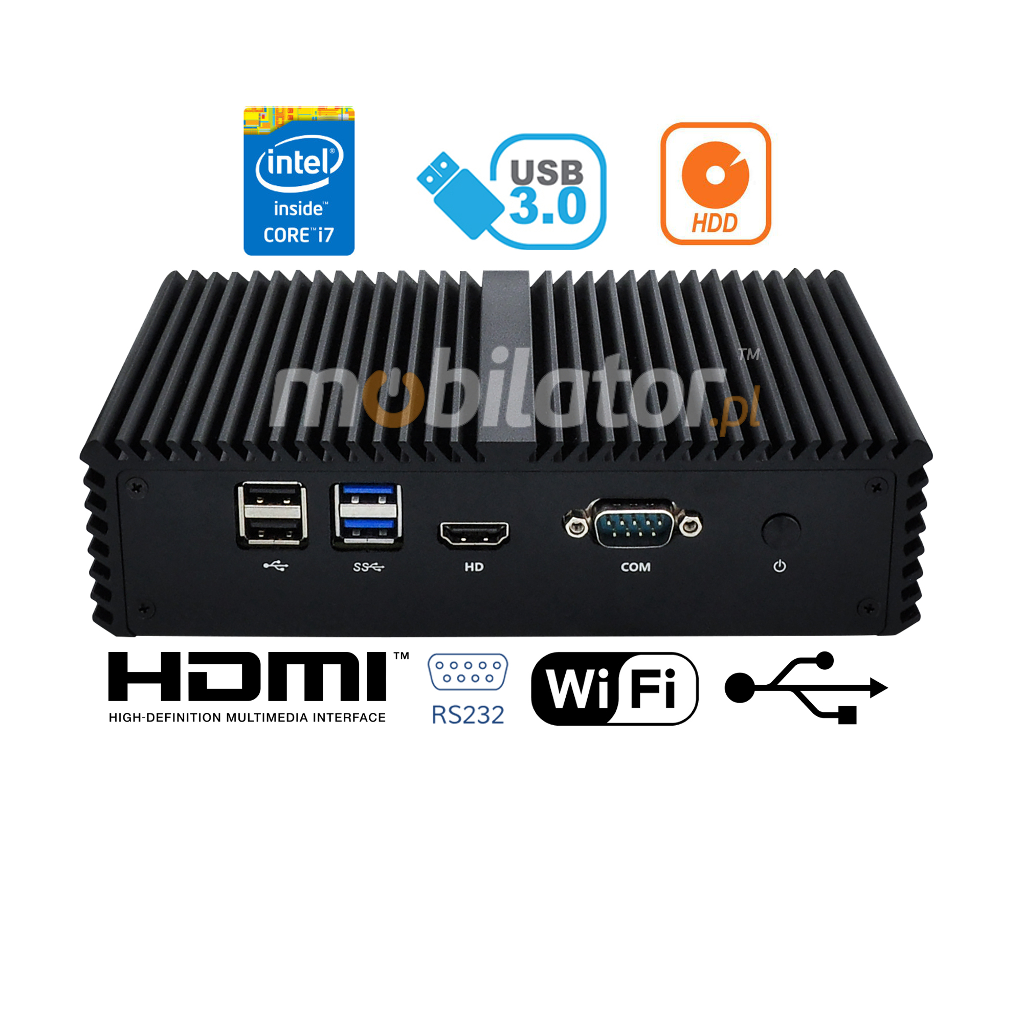 Small dimensions industrial computers excel in environments where dust, dirt and moisture predominate.They are ideal for applications requiring quiet operation.Small and reliable MiniPC use heat-pipe technology and aluminum fins for passive cooling.The robust mini Industrial Computer mBOX-Q5-510 is a device designed for all industrial and non-continuous applications requiring continuous operation - 24 hours, 7 days a week.
