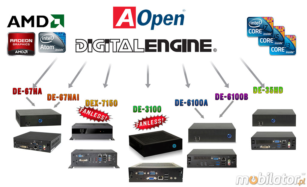 AOpen DE67-HA, MIniPC, Komputer przemys³owy DIGITAL ENGINE i3 i5 i7