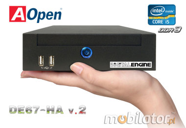 The AOpen Digital Engine DE67-HA is a rugged, high performance Intel-based system in a 6.5W x 6.3H x 1.89D footprint that weighs less than 3 pounds.