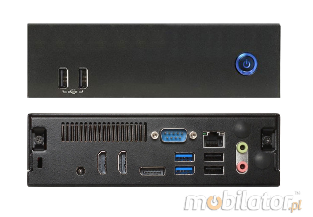 Realtek 10/100/1000 Gigabit Ethernet or WiFi adapter (optional) to connect the device to the network. The computer is equipped with: LAN connector, one COM port (RS232), four USB 2.0 ports, two USB 3.0 ports, two HDMI outputs, one Display Port two audio inputs, and optional WiFi, Bluetooth.