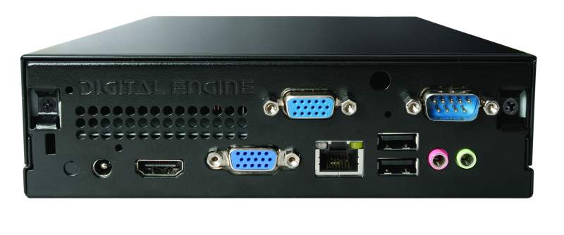 The AOpen Digital Engine DE965-Pro is a rugged, high performance Intel-based system in a 6.5W x 6.3H x 1.89D footprint that weighs less than 3 pounds.