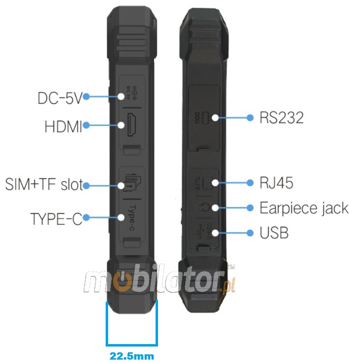 The versatile Mobipad 10DS-RTML industrial tablet offers a wide range of ports and interfaces for connecting various accessories and peripherals. These include USB-C with OTG and charging, USB 3.0, mini HDMI, a 3.5 mm audio jack, a micro-SIM slot, and a TF card reader. This makes the tablet suitable for both office and field work. It is an ideal tool for professionals requiring flexible and reliable equipment.