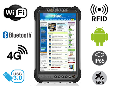 MobiPad 9TS-5A is a modern, waterproof industrial tablet designed for extreme applications. It has a specially designed, reinforced construction that meets the requirements of IP65, which confirms the protection of the device against dust and water.