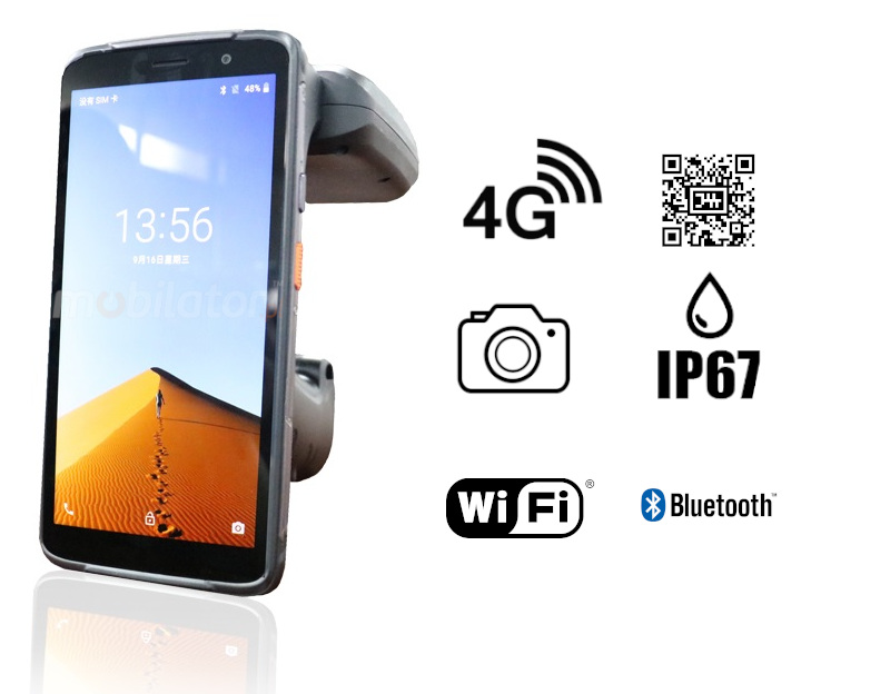 MobiPad T20R-2D is a modern, waterproof industrial data collector with a pistol grip designed for extreme applications. It has a specially designed, reinforced construction that meets the requirements of IP67.