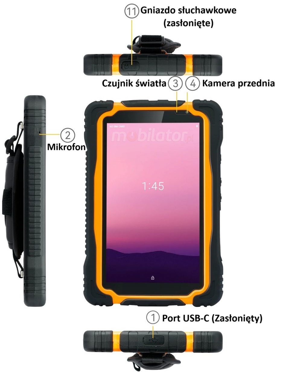 The specially designed construction of the military tablet guarantees the device's resistance to accidental drops from a height of up to 1.67 meters during operation, even onto hard surfaces.