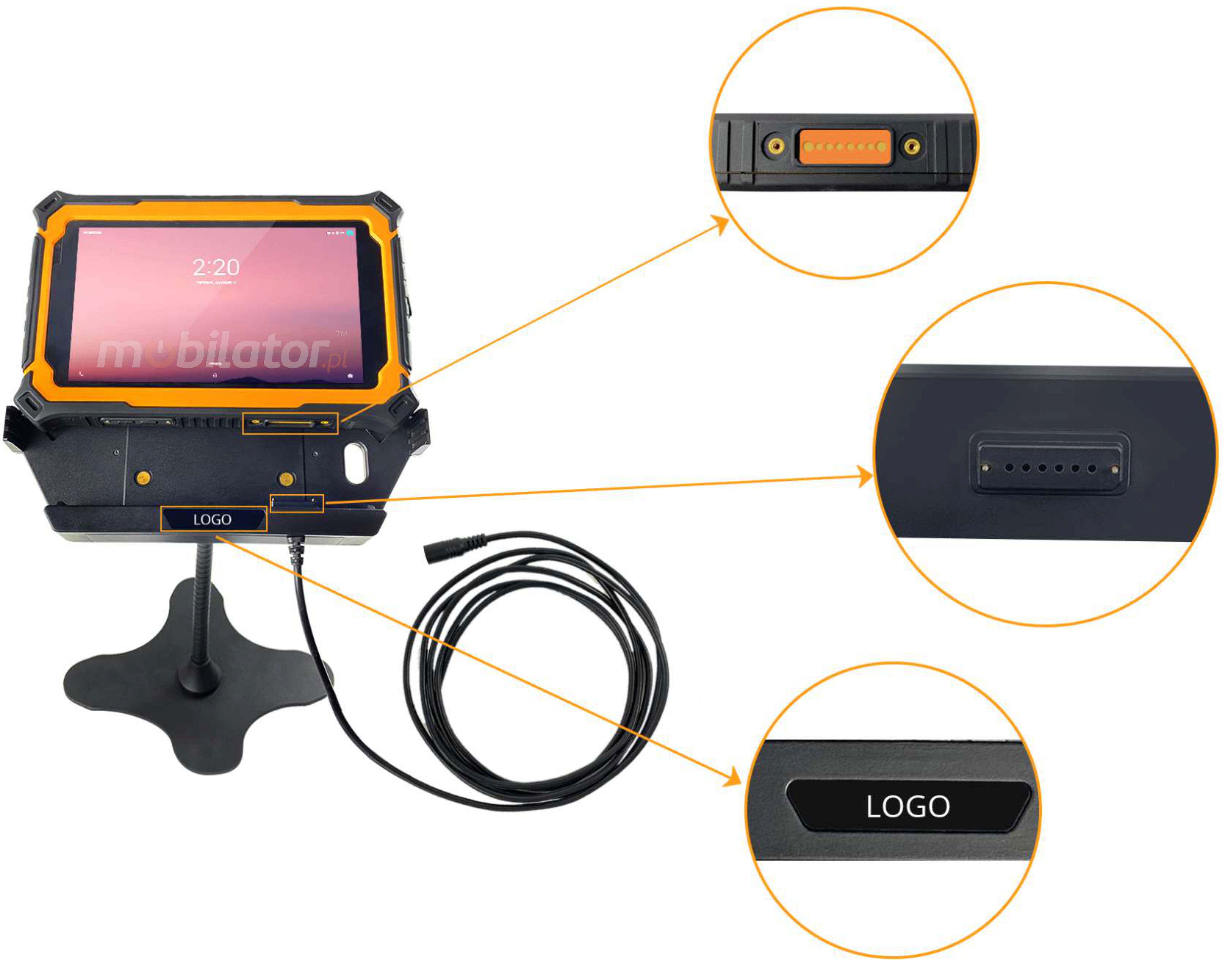 Designed for professionals, this desk mount provides a stable base for the MobiPad Tex17 rugged industrial tablet. Its stand connects to a dedicated docking station using the VESA standard, providing continuous power via a built-in cable. The design is characterized by precision craftsmanship. The entire set is designed for durability and performance in industrial applications. The base guarantees solidity and stability, measuring 200 mm x 200 mm. The entire mount weighs 0.753 kg. |