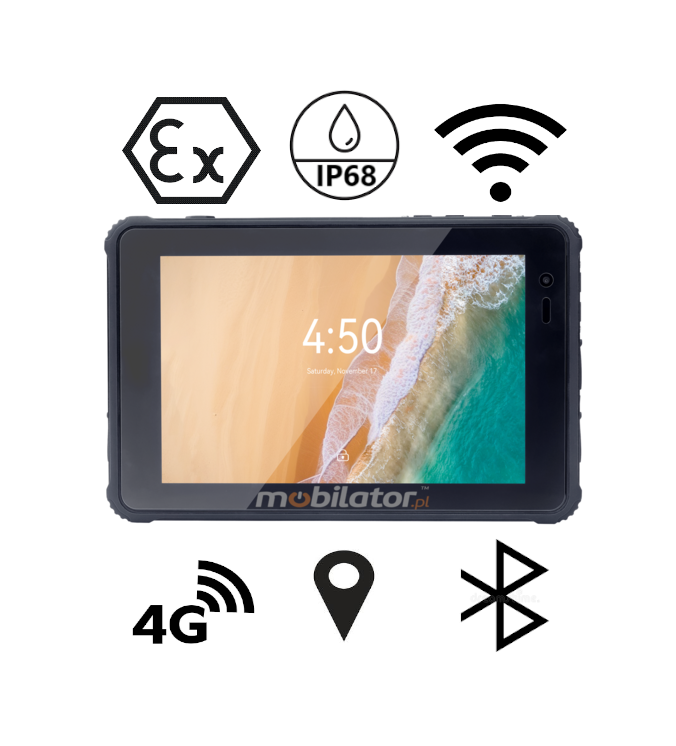 The ATEX-certified MobiPad Tex81 tablet is designed for use in explosive environments where flammable substances are present. It boasts exceptional durability in harsh conditions. The tablet's casing is completely dust- and waterproof, as confirmed by IP68 certification and the MIL-STD-810G military standard. This makes the device ideal for even the harshest conditions, such as construction sites or industrial infrastructure. Furthermore, thanks to specialized applications, this tablet becomes a key tool for monitoring and controlling production processes, as well as for collecting and analyzing real-time data, enabling work optimization and rapid decision-making.