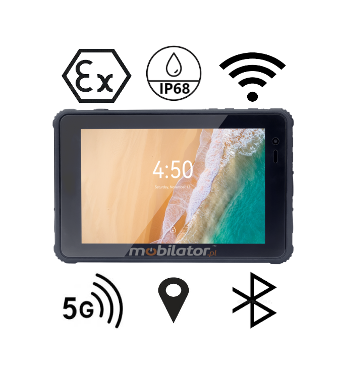 The ATEX-certified MobiPad Tex81 tablet is designed for use in explosive environments where flammable substances are present. It boasts exceptional durability in harsh conditions. The tablet's casing is completely dust- and waterproof, as confirmed by IP68 certification and the MIL-STD-810G military standard. This makes the device ideal for even the harshest conditions, such as construction sites or industrial infrastructure. Furthermore, thanks to specialized applications, this tablet becomes a key tool for monitoring and controlling production processes, as well as for collecting and analyzing real-time data, enabling work optimization and rapid decision-making.
