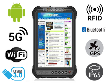 MobiPAD TS9T v.5 - reinforced industrial tablet with IP65 standard, equipped with UHF RFID module with a range of up to 4 meters, 5G, Wifi and Bluetooth, 8GB RAM, 256GB ROM