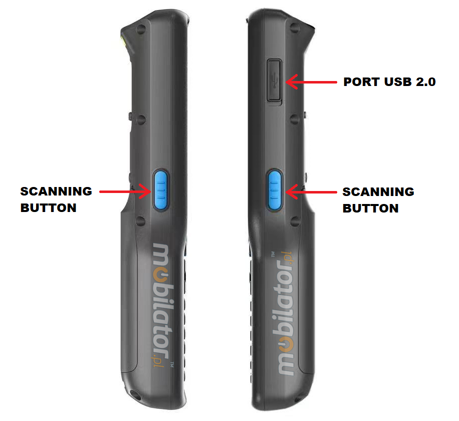 The MobiPAD V35 collector has 27 buttons on the keyboard (including the power button), as well as 3 buttons on the sides of the device.