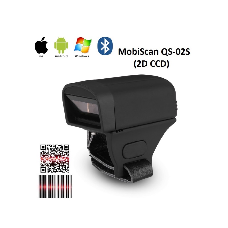 MobiScan QS-02S - mini barcode scanner 1D - Ring - Bluetooth which the manufacturer recommends widely used in situations where it is necessary to rapidly identify the goods in commerce, logistics, transport, shipping, industrial, financial and public sectors.