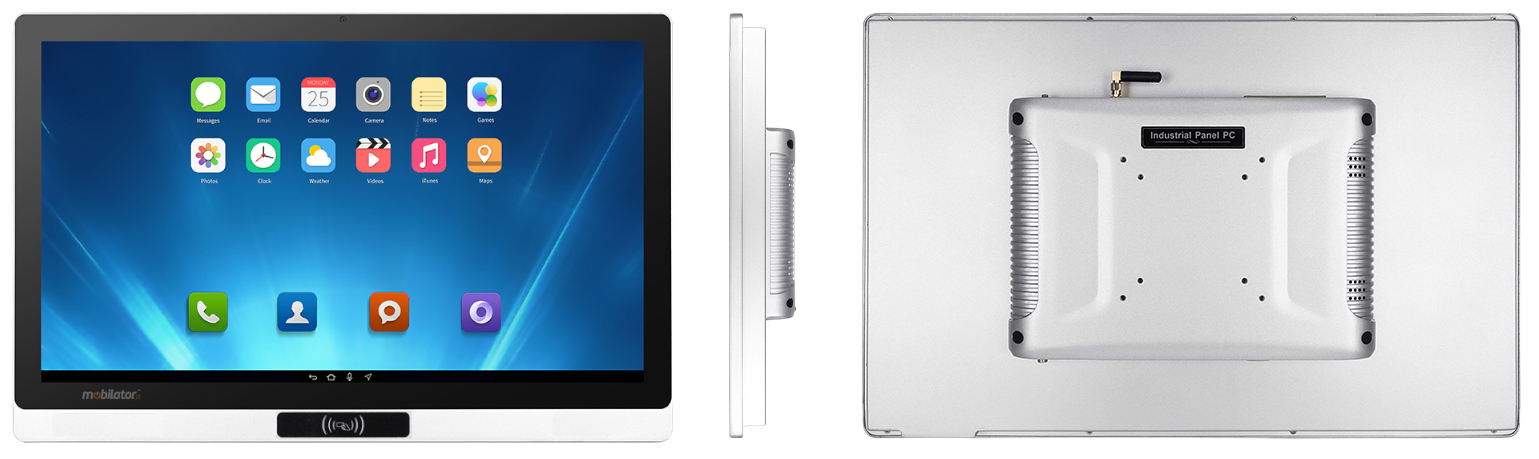 PanelPC Mobitouch 215A-LF is designed for continuous operation both at very low and high temperatures in the range from -10 ° C to 60 ° C. If the device is turned off, it can handle temperatures ranging from -20 ° C to 70 ° C. In addition, the durable PanelPC is perfect for rooms with increased humidity, ensuring proper functioning even in the case of 95% relative air humidity. It is also possible to purchase additional fanless cooling.