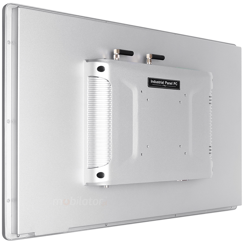 The panel PC has a good-quality metal casing. It is an important element of the cooling system thanks to specially designed cutouts that facilitate air circulation inside the housing. The overall design of the device is focused on simplicity and functionality, appreciated among professionals, as an accessory the panel can be equipped with passive cooling.