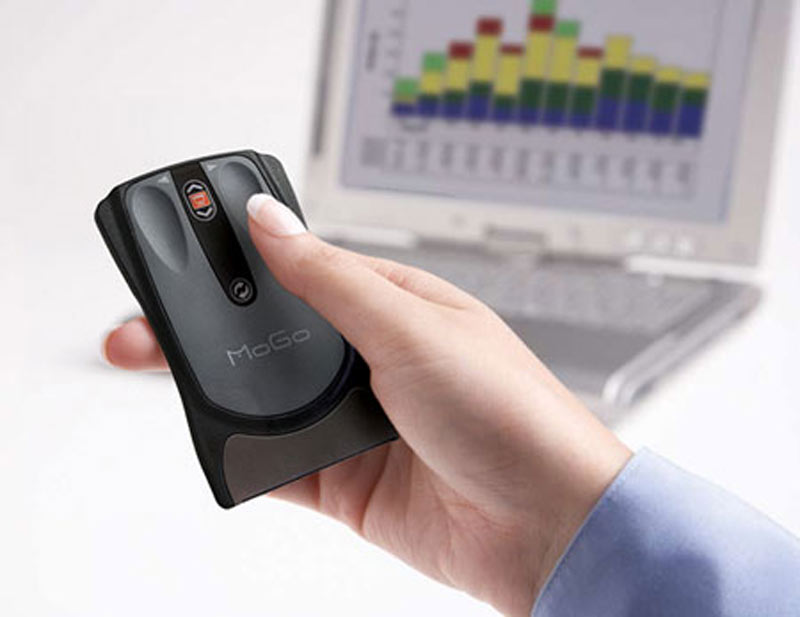 MoGo Presenter Mouse PC™ is a combined wireless presenter and mouse that stores and charges inside your laptop’s PC/ PCMCIA card slot – a “must have” for every laptop. The sleek design and size make it ideal for business travelers. It includes the same functionality as conventional optical wireless mice – scroll, right click, left click – without the bulky, oversized design. With the push of a button, your MoGo Presenter Mouse PC™ turns into a wireless presenter – allowing you to control your PowerPoint presentations with 30 feet of freedom. It features a slide changer, start/escape and blank screen buttons.