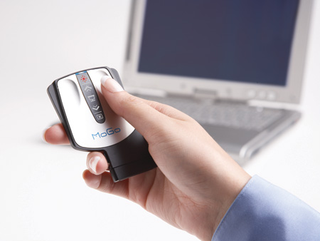 There has never been a mouse quite like MoGo Media Mouse X54™ Sleek and comfortable, it allows the same functionality as conventional laser wireless mice – scroll, right click, left click – but without the cumbersome design that makes other mice difficult to take on the road. MoGo Media Mouse X54™ is built with an easy on/off switch and a handy kickstand that lets users choose from two different wrist positions.