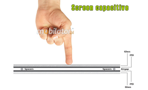 Operation of this type of screen is a bit more complex than the resistive screens, but the comfort of their use is much higher. In the corners of the screen capacitive electrodes are placed emitting weak electric field. If you touch the display, the intensity produced before the field changes, and the system will calculate respectively, where the disturbance occurred.