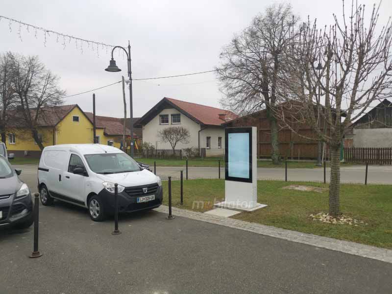 The standing totem with an LCD screen is equipped with a WiFi module and 4G, and optional Bluetooth. In addition, the totem has a module that allows you to track the position.