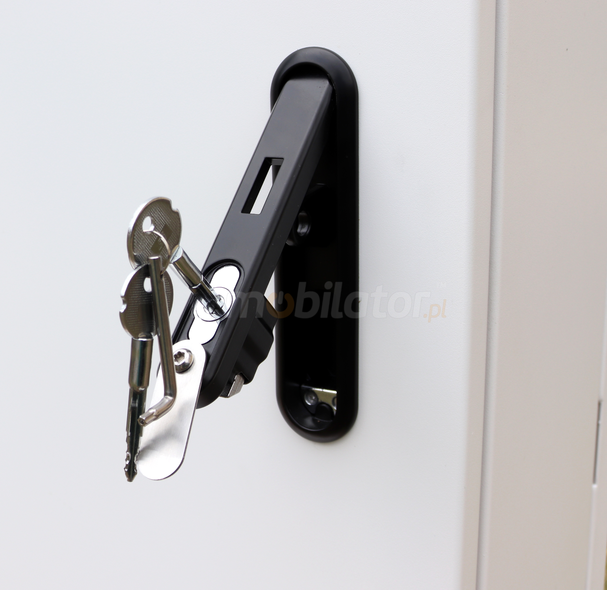 The outdoor standing totem has an anti-theft lock inside the device. In addition, the panel is screwed through the support to the base with screws, preventing quick disassembly. In addition, the device is equipped with a special alarm.