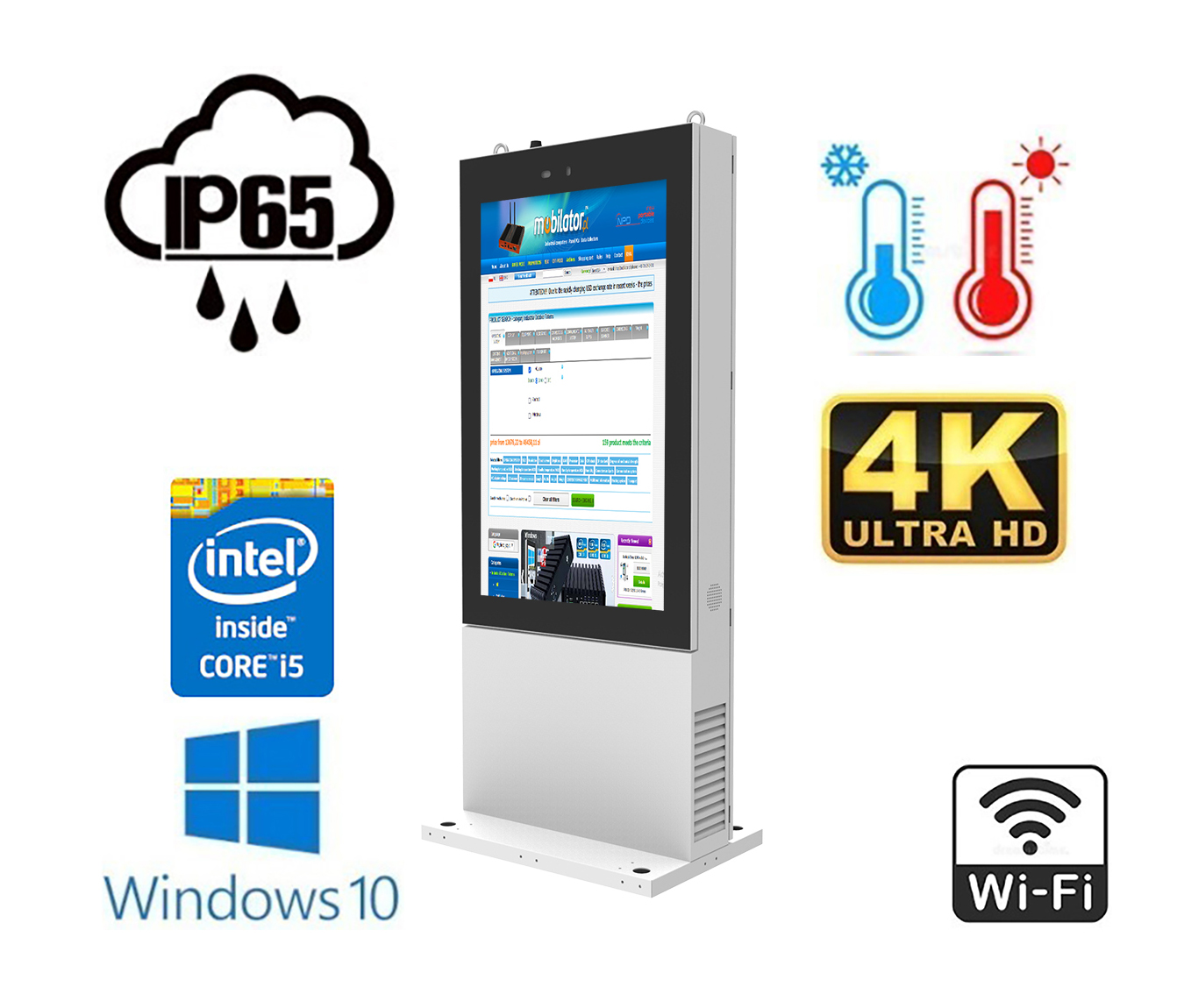NoMobi Trex 55W v.11.1 - free-standing waterproof advertising totem 55 inches with a 4K screen (Windows 10), work in low and high temperatures, with the IP65 standard and air delivery (approx. 14 days)