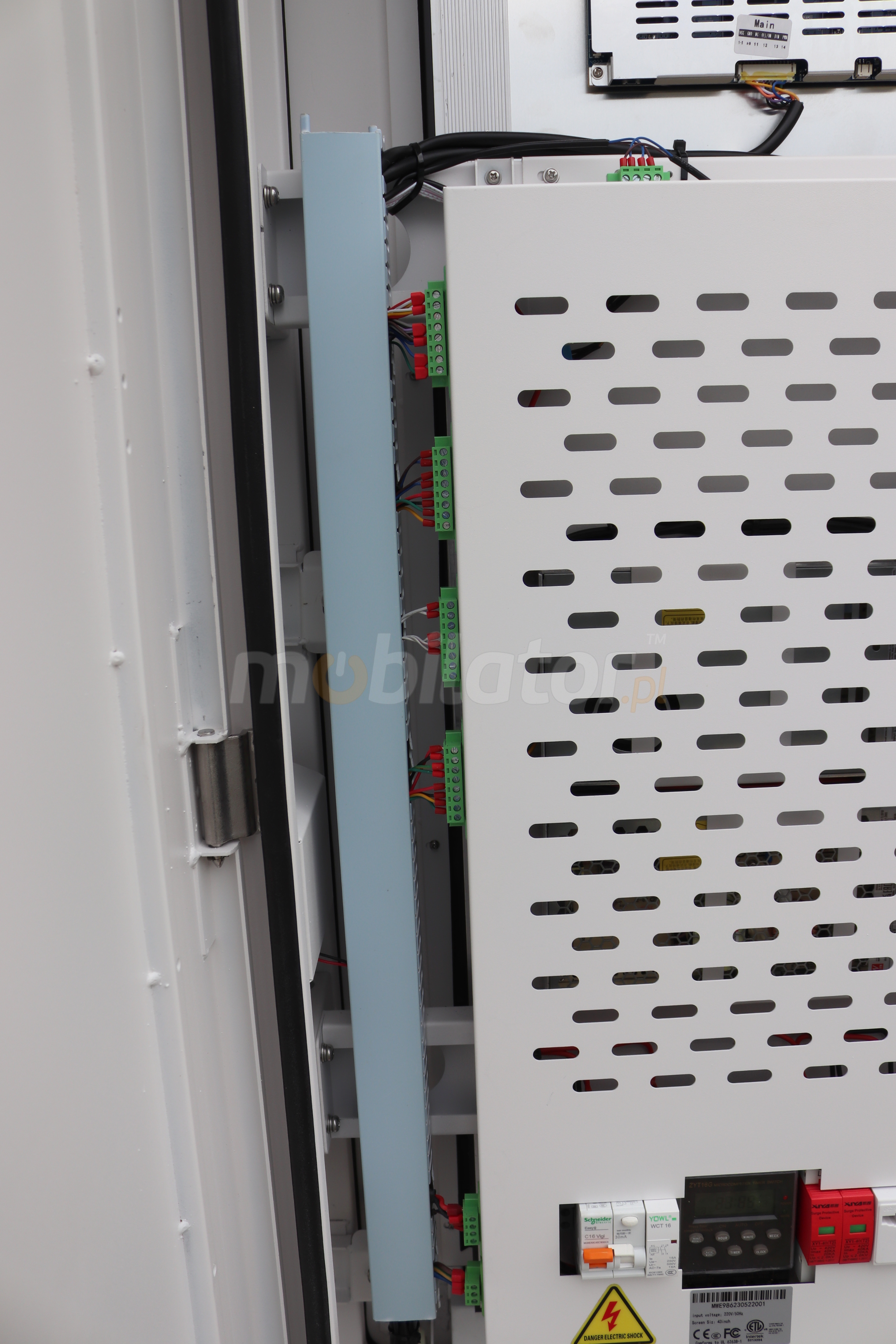 The outdoor standing totem has an anti-theft lock inside the device. In addition, the panel is screwed through the support to the base with screws, preventing quick disassembly. In addition, the device is equipped with a special alarm.