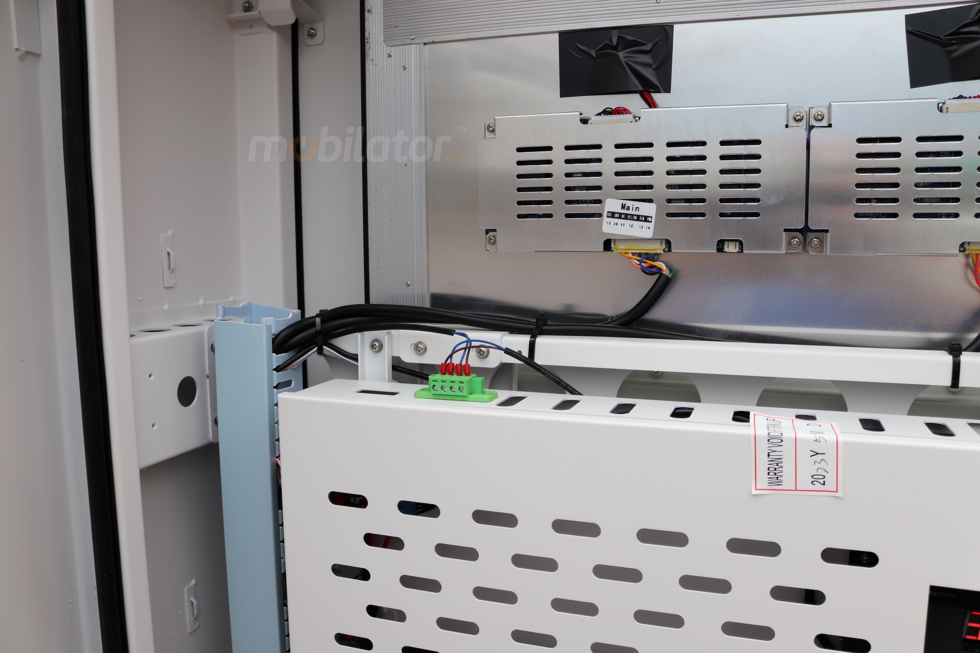 A heat exchanger is installed in the device to cool the device at high temperatures, so that the outdoor totem can function in heat and sun. The cooling system allows the display to work properly in summer and the ads will be visible. For example, if the device starts to heat up to 60 ° C is a mounted fan, by increasing the speed of rotation, the totem will cool down to a temperature below 50°C, thanks to which the device will be able to function properly.
