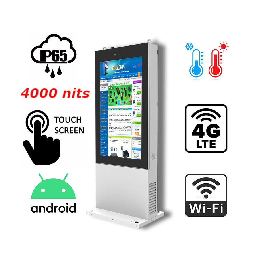 NoMobi Trex Hi75 v.5 - infokiosk on Android - for municipal, district and voivodeship offices - resistant to weather conditions - 75-inch touch screen with a brightness of 4000 nits (very good visibility