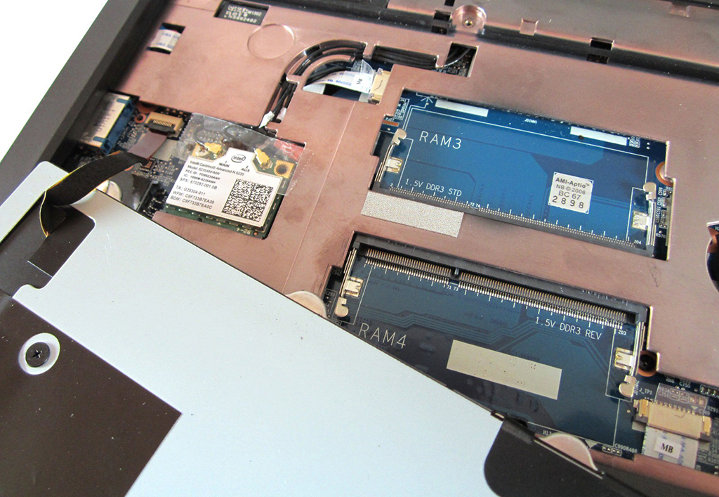 CLEVO leaving the needs of laptop users comply P150SM easy access to system components. In this way without any problems replacing the drive with a larger one, increase the efficiency of bone RAM or simply clear the laptop with residual dust.