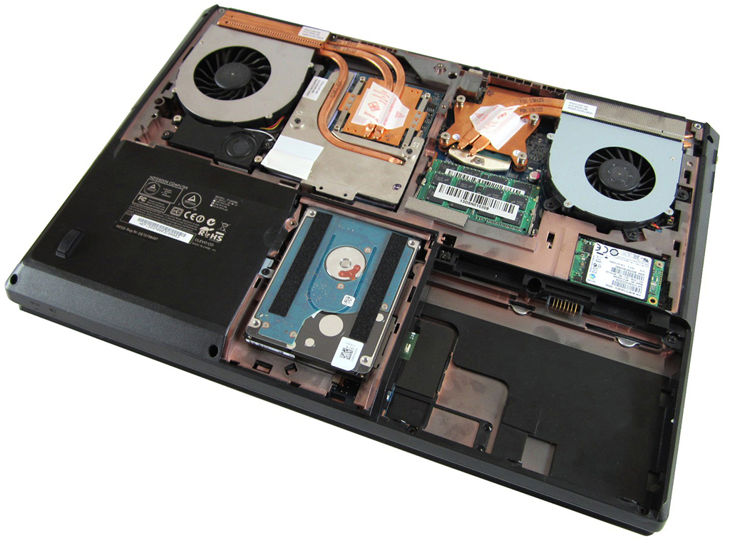 CLEVO leaving the needs of laptop users comply P150SM easy access to system components. In this way without any problems replacing the drive with a larger one, increase the efficiency of bone RAM or simply clear the laptop with residual dust.