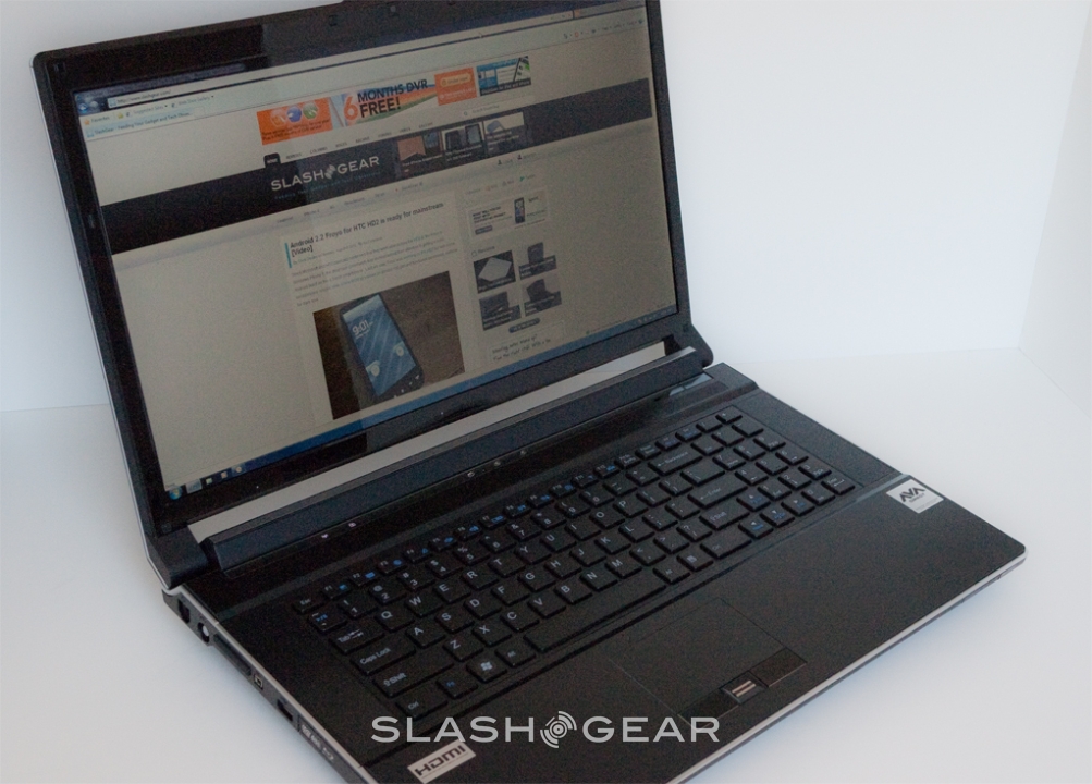 The Clevo has an island-style keyboard where the keys are raised above the surface and have more-than-usual spacing. The keyboard has an unsophisticated plasticky feel but has a direct action, allowing for fast and accurate typing. There is no perceivable flex. The keys require