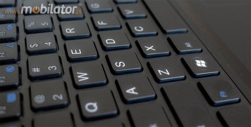 The Clevo has an island-style keyboard where the keys are raised above the surface and have more-than-usual spacing. The keyboard has an unsophisticated plasticky feel but has a direct action, allowing for fast and accurate typing. There is no perceivable flex. The keys require
