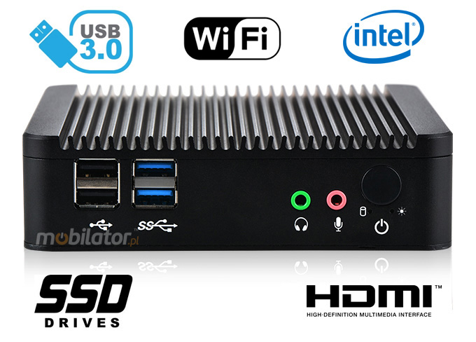 The industrial Mini PC uses a proven cooling system, based only on solid elements, mainly heat sinks.The system uses the phenomenon of metals passing thermal energy into the environment - there are no additional moving elements in the form of eg fans.This solution ensures noiseless operation, lower failure rate and greater protection against dust and other dirt while reducing the amount of energy consumed.