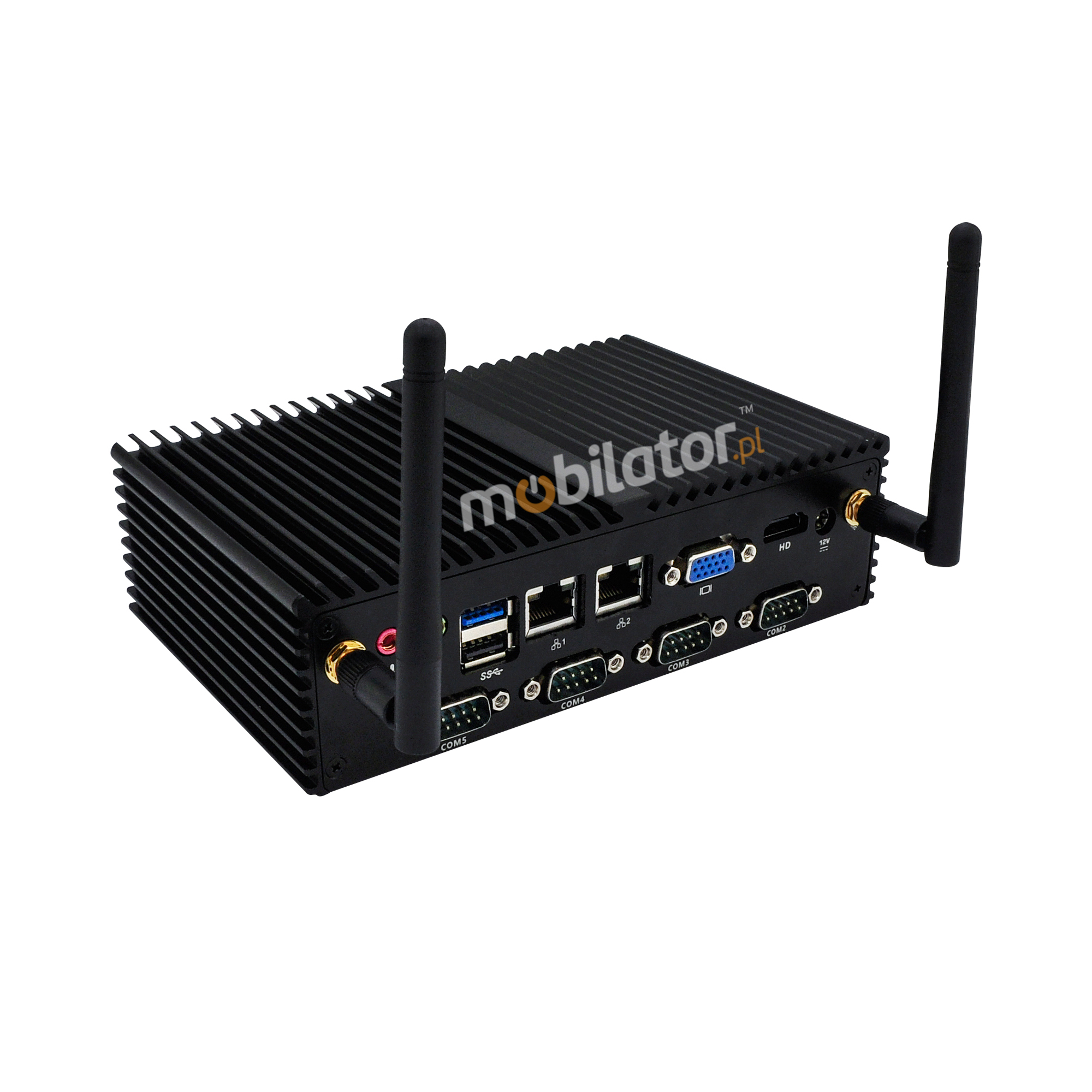Small dimensions industrial computers excel in environments where dust, dirt and moisture predominate. They are ideal for applications requiring quiet operation. Small and reliable MiniPC use heat-pipe technology and aluminum fins for passive cooling. The robust mini Industrial Computer mBOX-Q190X is a device designed for all industrial and non-continuous applications requiring continuous operation - 24 hours, 7 days a week.